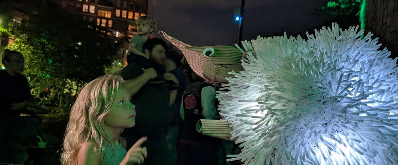 A creature born from your imagination conjured as a handmade costume or puppet for the purpose of delighting friends and strangers. Finger puppets to giant puppets, paper plate masks to fancypants costumes, all are welcome!
